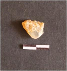 | Description / विवरण | The chalcedony piece is a by product of lithic knapping. It has angular ends and flake scars on the surface. One end has sharp edge with use - wear. |