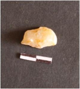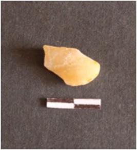 | Description / विवरण | The chalcedony piece is a by product of lithic knapping. It has angular ends and flake scars on the surface. The piece is flat with roughly parallel sides and a pointed end. |