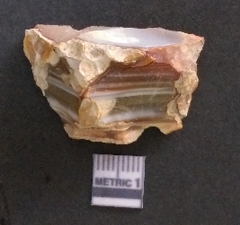 | Description / विवरण | This is an agate core stone, flakes has been removed. Bulb of percussion seen on one side with a striking platform. Cortex covered. |