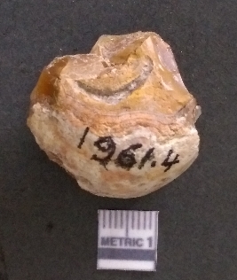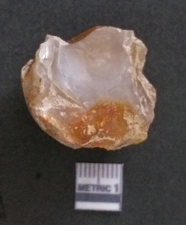 | Description / विवरण | This is a quartz flake with a bulb of percussion seen on one side, flaked scars on the other side with cortex covered on one side fully. |