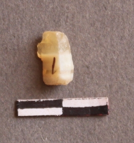 | Description / विवरण | This is a chalcedony fragment, flake ridges on the surface with rounded edges. |