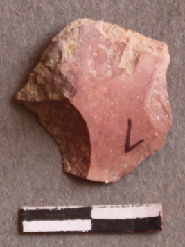 | Description / विवरण | It is a chert fragment. With flake scars on the surface. Bulb of percussion on the ventral side of the fragment. |