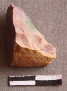 | Description / विवरण | It is a chert fragment. Cortex on the surface. Flake scars with ripples on the surface. |