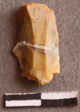 | Description / विवरण | Jasper with stubby rectangular piece with clear flake scars. |
