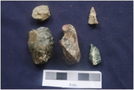 | Description / विवरण | No. of Debitage 6 With flake scars, One of the debitage has a Bulb of percussion and Striking platform. |