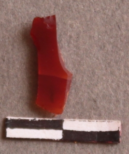 | Description / विवरण | The chalcedony has sharp edges and flake scars on the surface. It is bright red piece resembling carnelian. |