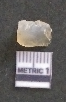| Description / विवरण | This is a chalcedony flake, flake scars seen on the surface, bulb of percussion seen. |