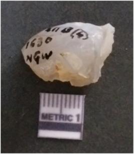| Description / विवरण | This is a milky quartz stone core, a fraction of cortex seen on one side. Flake scars are seen on it. |