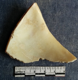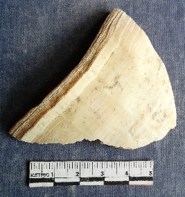 | Description / विवरण | This is a shell piece with unfinished cut marks which suggest them as waste product in the shell working area. One side show the sharp end, other sides are broken naturally. |