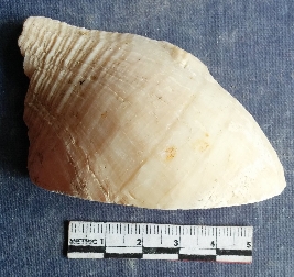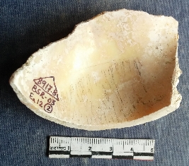 | Description / विवरण | This is a shell piece with unfinished cut marks which suggest them as waste product in the shell working area. One side show the sharp end, other sides are broken naturally. |