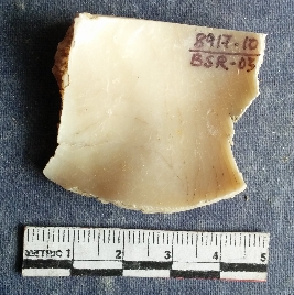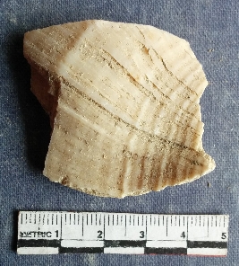 | Description / विवरण | This is a shell piece with unfinished cut marks which suggest them as waste product in the shell working area. One side show the sharp end, other sides are broken naturally. |