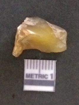 | Description / विवरण | This is a chalcedony flake, flake scars seen on the surface, bulb of percussion seen. Cortex seen on one side. |