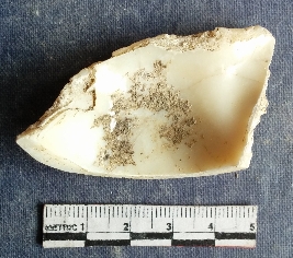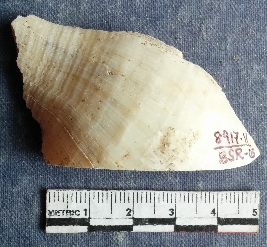 | Description / विवरण | This is a shell piece with unfinished cut marks which suggest them as waste product in the shell working area. One side show the sharp end, other sides are broken naturally. |