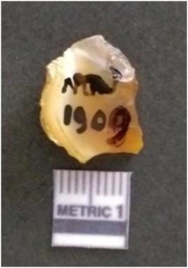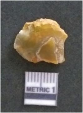 | Description / विवरण | This is a carnelian flake with cortex covered on one side, bulb of percussion seen on it. |