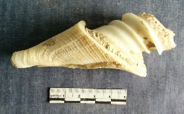 | Description / विवरण | This is a shell piece with unfinished cut marks on its surface, which suggests it is a bi-product of shell working unit. This portion is a colummella portion of the shell. |