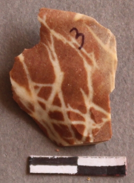 | Description / विवरण | It is a Jasper fragment. Flake scars on the surface. Bulb of percussion on the ventral side, with sharp cutting edges. |