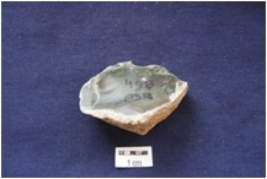 | Description / विवरण | No. of Flake 1 With flake scars, Bulb of percussion. It also has cortex on the surface. |