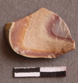 | Description / विवरण | It is a Chert fragment. Natural bands on the surface due to natural formation. Cortex on one end of the surface. Striking platform with bulb of percussion on the surface. |