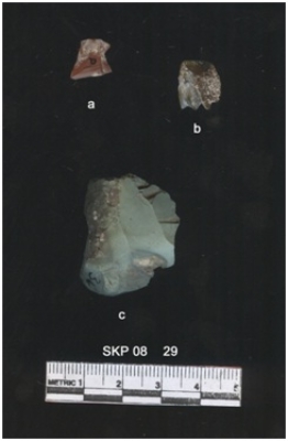 | Description / विवरण | It is a chalcedony fragment, with a bulb of percussion on the ventral side. |
