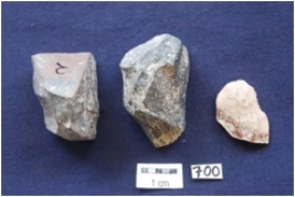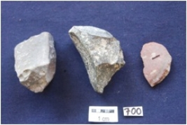 | Description / विवरण | No. of Debitage 3 Core 2 flakes detached Flake 1 with flakes scars and bulb of percussion. |