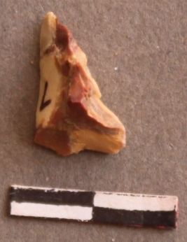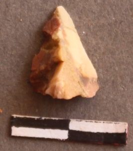 | Description / विवरण | It is a Chert fragment. Flake scars on the surface. Pointed ends and sharp edges. Striking platform on the proximal end |