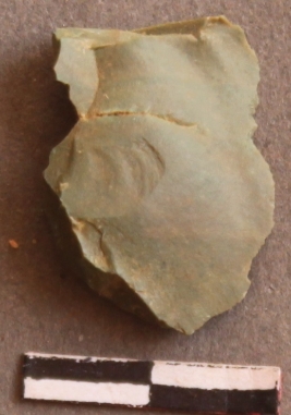 | Description / विवरण | It is a Chert fragment, striking platform with bulb on the ventral side with ripples on them due to heavy percussion |