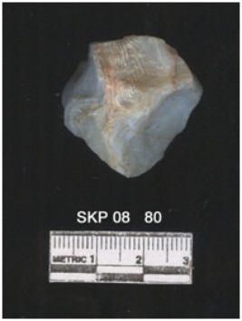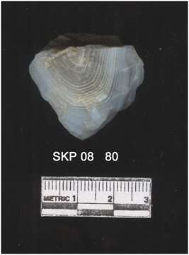 | Description / विवरण | Lithic debitage, it is of agate. The bands can be seen on the stone surface. It has got a striking platform. |