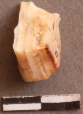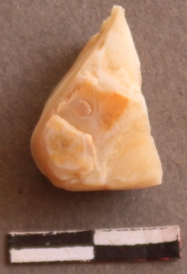 | Description / विवरण | It is a chalcedony nodule, with a bulb of percussion on the ventral side. Cortex on one end. |