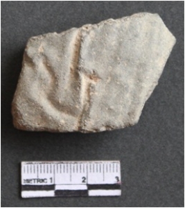 | Description / विवरण | It is a vitrified pottery fragment. Pate greenish brown in color. It is a Pont of a jar. The surface shows that the pottery has gone through the skittering process due to that the surface is uneven. Vertical grooves on the surface. |