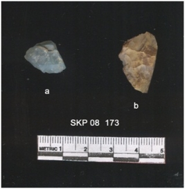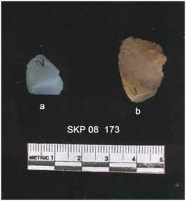 | Description / विवरण | Quartz with copper impurities internally with bulb of percussion and flaked fractural surface. milky. |