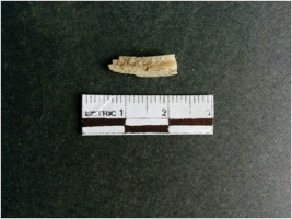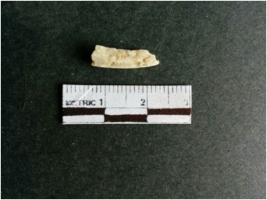 | Description / विवरण | The shell fragment is a small piece, with truncated ends and sharp edges. The piece has natural polish on its inner surface and outer surface has natural rough striations. The piece is pale white in color. The piece is waste material bi - product as a result of shell working at the site. |