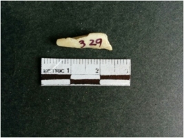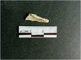 | Description / विवरण | The shell fragment is a small piece, with truncated ends and sharp edges. The piece has natural polish on its inner surface and outer surface has natural rough striations. The piece is pale white in color. The piece is waste material bi - product as a result of shell working at the site. |