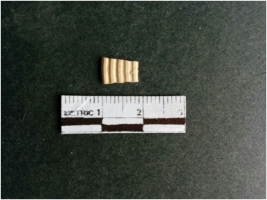 | Description / विवरण | The shell fragment is a small piece, with truncated ends and sharp edges. The piece has natural polish on its inner surface and outer surface has natural rough striations. The piece is pale white in color. The piece is waste material bi - product as a result of shell working at the site. |