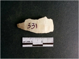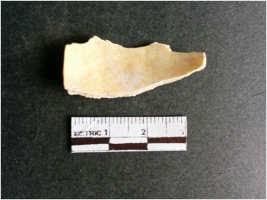| Description / विवरण | The shell fragment is a small piece, with truncated ends and sharp edges. The piece has natural polish on its inner surface and outer surface has natural rough striations. The piece is pale white in color. The piece is waste material bi - product as a result of shell working at the site. |