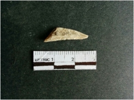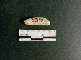 | Description / विवरण | The shell fragment is a small piece, with truncated ends and sharp edges. The piece has natural polish on its inner surface and outer surface has natural rough striations. The piece is pale white in color. The piece is waste material bi - product as a result of shell working at the site. |