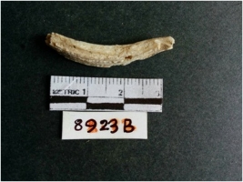 | Description / विवरण | The shell fragment is a small piece, with truncated ends and sharp edges. The piece has natural polish on its inner surface and outer surface has natural rough striations. The piece is pale white in color. The piece is waste material bi - product as a result of shell working at the site. |