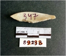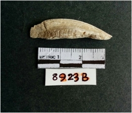 | Description / विवरण | The shell fragment is a small piece, with truncated ends and sharp edges. The piece has natural polish on its inner surface and outer surface has natural rough striations. The piece is pale white in color. The piece is waste material bi - product as a result of shell working at the site. |