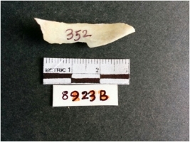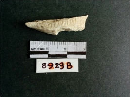 | Description / विवरण | The shell fragment is a small piece, with truncated ends and sharp edges. The piece has natural polish on its inner surface and outer surface has natural rough striations. The piece is pale white in color. The piece is waste material bi - product as a result of shell working at the site. |