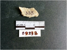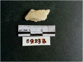 | Description / विवरण | The shell fragment is a small piece, with truncated ends and sharp edges. The piece has natural polish on its inner surface and outer surface has natural rough striations. The piece is pale white in color. The piece is waste material bi - product as a result of shell working at the site. |