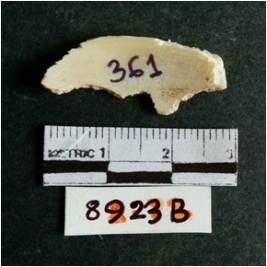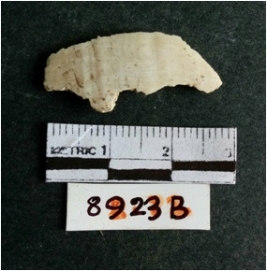 | Description / विवरण | The shell fragment is a small piece, with truncated ends and sharp edges. The piece has natural polish on its inner surface and outer surface has natural rough striations. The piece is pale white in color. The piece is waste material bi - product as a result of shell working at the site. |