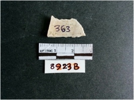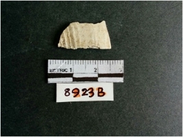 | Description / विवरण | The shell fragment is a small piece, with truncated ends and sharp edges. The piece has natural polish on its inner surface and outer surface has natural rough striations. The piece is pale white in color. The piece is waste material bi - product as a result of shell working at the site. |