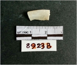 | Description / विवरण | The shell fragment is a small piece, with truncated ends and sharp edges. The piece has natural polish on its inner surface and outer surface has natural rough striations. The piece is pale white in color. The piece is waste material bi - product as a result of shell working at the site. |