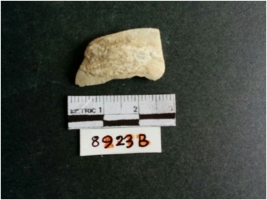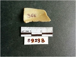| Description / विवरण | The shell fragment is a small piece, with truncated ends and sharp edges. The piece has natural polish on its inner surface and outer surface has natural rough striations. The piece is pale white in color. The piece is waste material bi - product as a result of shell working at the site. |