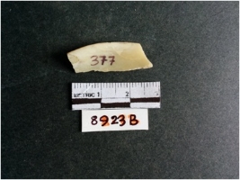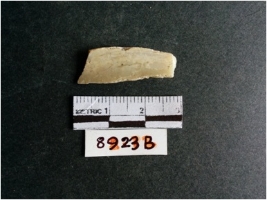 | Description / विवरण | The shell fragment is a small piece, with truncated ends and sharp edges. The piece has natural polish on its inner surface and outer surface has natural rough striations. The piece is pale white in color. The piece is waste material bi - product as a result of shell working at the site. |