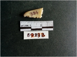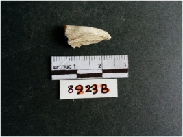 | Description / विवरण | The shell fragment is a small piece, with truncated ends and sharp edges. The piece has natural polish on its inner surface and outer surface has natural rough striations. The piece is pale white in color. The piece is waste material bi - product as a result of shell working at the site. |