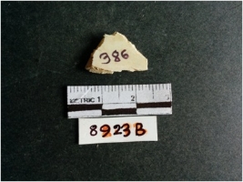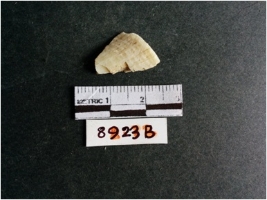 | Description / विवरण | The shell fragment is a small piece, with truncated ends and sharp edges. The piece has natural polish on its inner surface and outer surface has natural rough striations. The piece is pale white in color. The piece is waste material bi - product as a result of shell working at the site. |