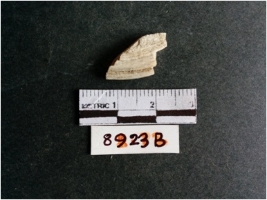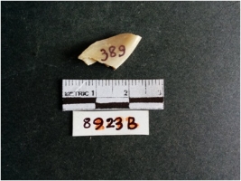| Description / विवरण | The shell fragment is a small piece, with truncated ends and sharp edges. The piece has natural polish on its inner surface and outer surface has natural rough striations. The piece is pale white in color. The piece is waste material bi - product as a result of shell working at the site. |
