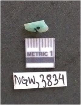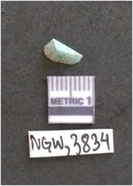 | Description / विवरण | This is a amazonite lithic debitage fragment, light greenish in color with sharp ends and edges. |