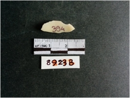 | Description / विवरण | The shell fragment is a small piece, with truncated ends and sharp edges. The piece has natural polish on its inner surface and outer surface has natural rough striations. The piece is pale white in color. The piece is waste material bi - product as a result of shell working at the site. |