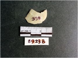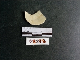 | Description / विवरण | The shell fragment is a small piece, with truncated ends and sharp edges. The piece has natural polish on its inner surface and outer surface has natural rough striations. The piece is pale white in color. The piece is waste material bi - product as a result of shell working at the site. |